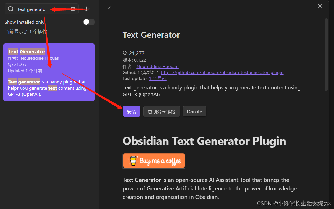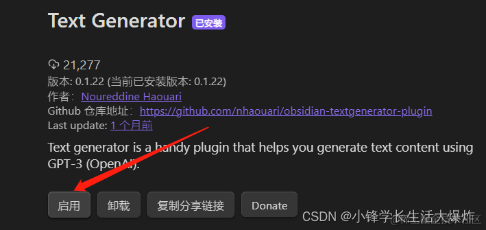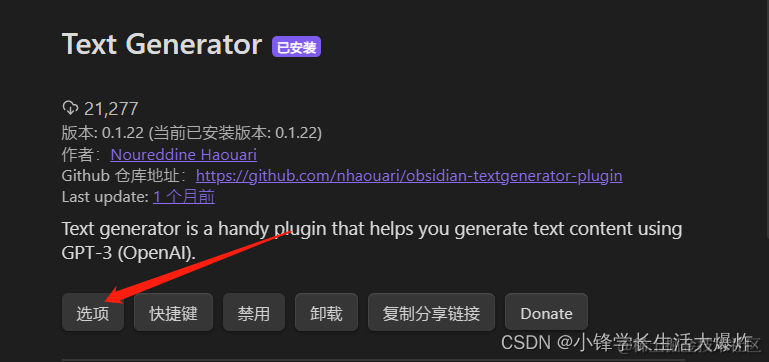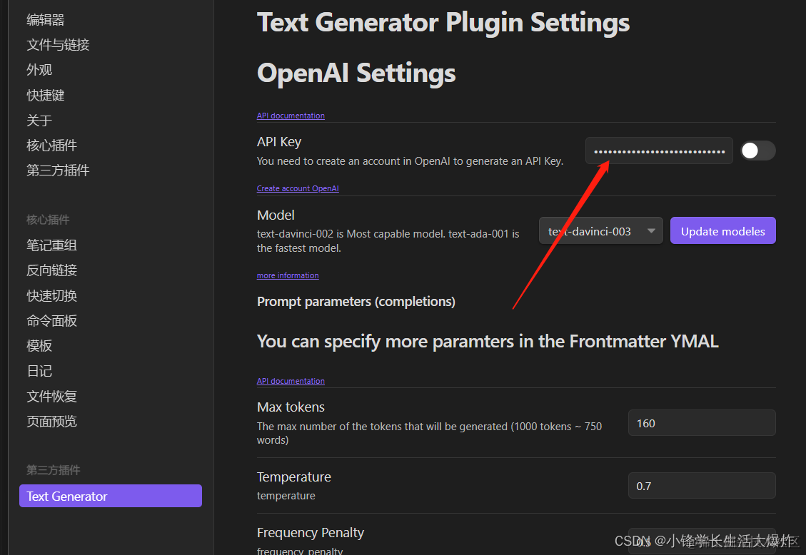 Text generator是Obsidian的一个插件,可以帮助您使用GPT-3 (OpenAI)生成文本内容,并且可以选择 Open AI 中最强大的模型“达芬奇”。