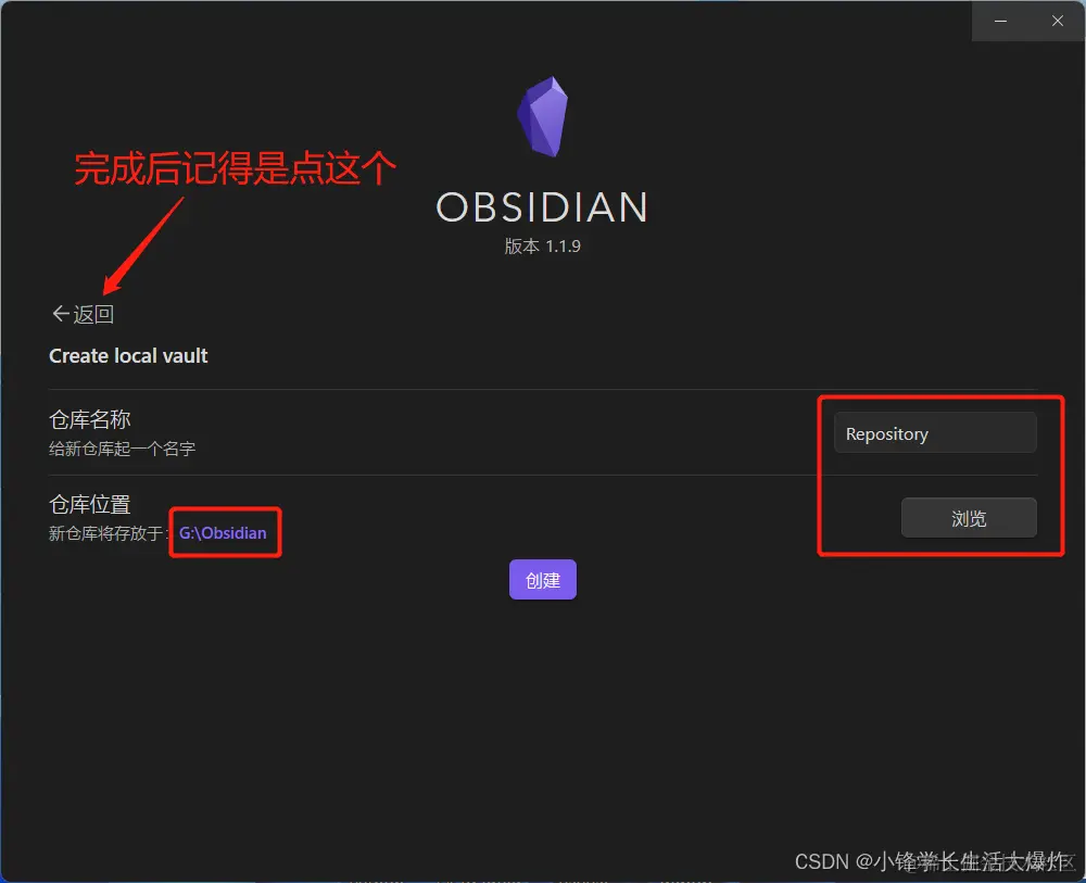 如果你有账号,记得点“返回”按钮,然后点“登录”,以便同步笔记。如果不用登录账号,那直接在这个界面点“创建”即可。
