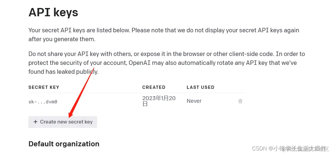 生成开放 AI API 密钥。请按照以下步骤操作: