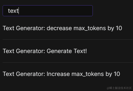 在“文本生成器插件”中,我建议您设置三个命令:和 . “Generate text,” “Increase max_tokens by 10”``“decrease max_tokens by 10”