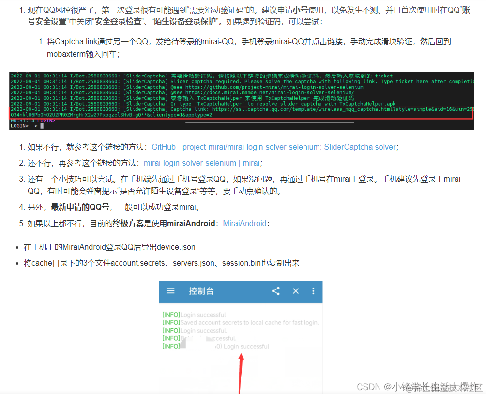 特别是,“手机上用MiraiAndroid登录QQ后,成功后导出cache目录和device.json到电脑的mirai中,并设置autologin信息”,这一步骤非常管用。我每次都是用这个方法。