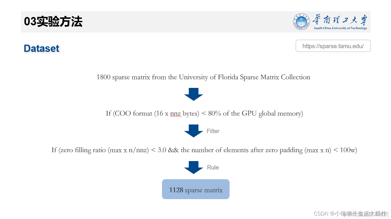 他的数据集使用的是佛罗里达大学的公开稀疏矩阵集。