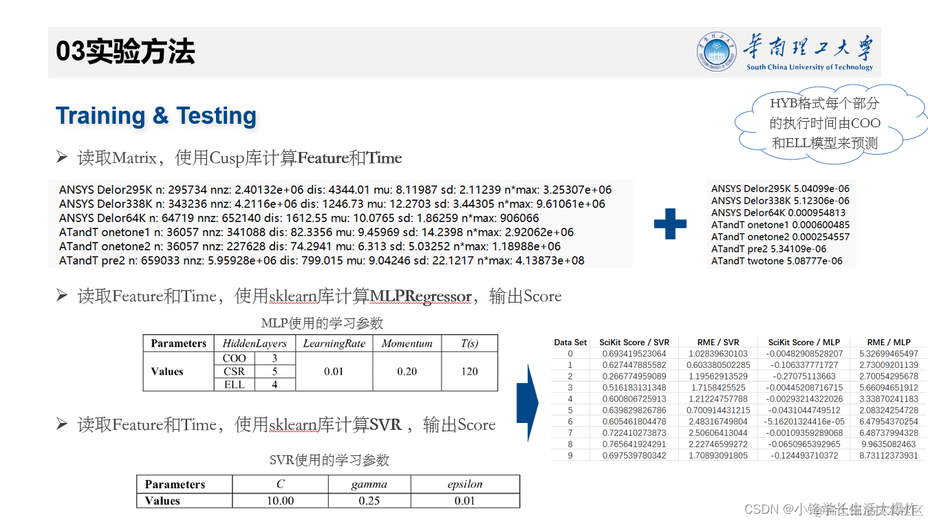 然后使用cusp库对每个矩阵计算其特征和SpMV平均运算时间,其中,特征用于训练,时间用作标签。
