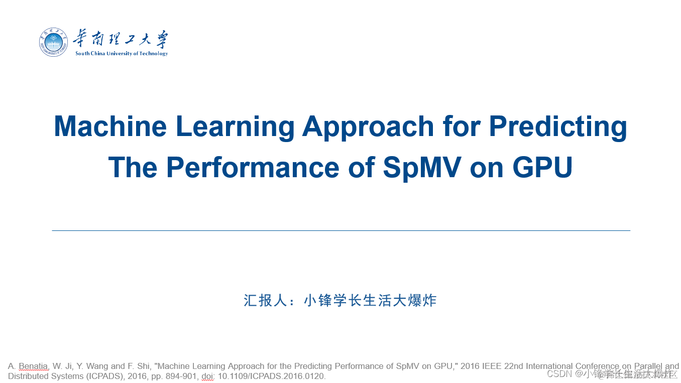 矩阵向量乘法的性能跟矩阵的稀疏性和硬件有关,作者从这两个方面出发,在两种不同的GPU上,分别使用支持向量回归和多层感知机算法,来预测几种稀疏格式的SpMV性能。