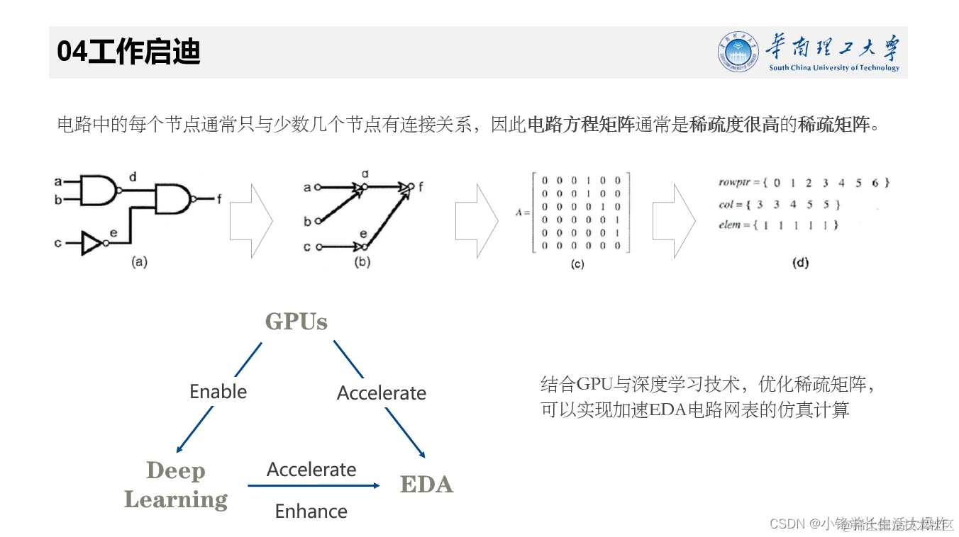 因此,基于这个思想,通过结合GPU与人工智能技术,优化稀疏矩阵,可能可以实现加速EDA电路网表的仿真计算。