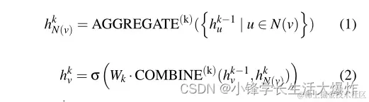 理论上可得节点v在k层邻域聚合后的嵌入zv为h^k_v[24],其中: