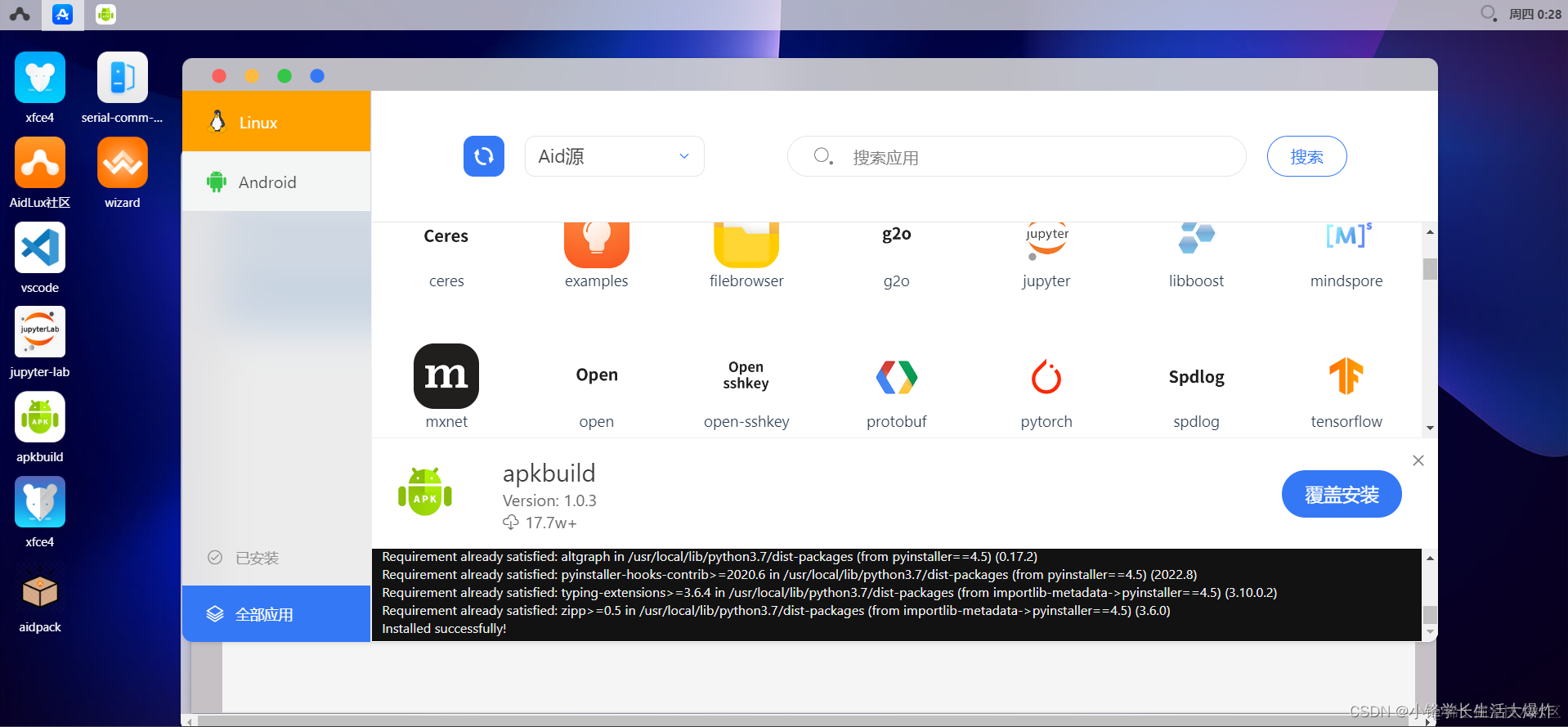 要想打包成apk,会麻烦一点。这里用的是AidLux自带的打包工具ApkBuild。
