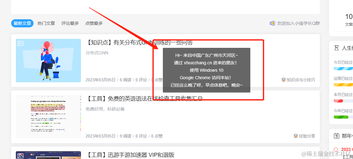 (原作者的代码在cookie部分有问题,导致每次刷新页面,都会弹出气泡,体验非常差。以下代码经过了修改,1天内仅在首次进入时才会有气泡。)