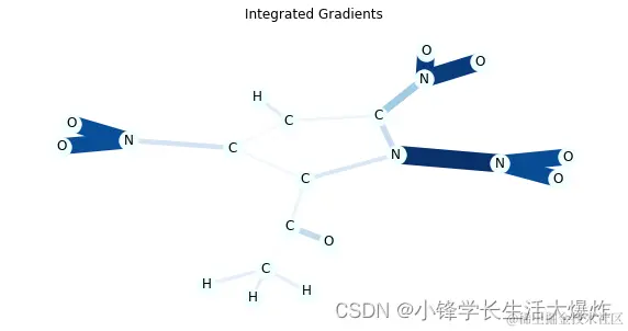 在这个可视化中,边缘的颜色和厚度代表了重要性。你也可以通过向draw_molecule函数传递draw_edge_labels来查看数值。