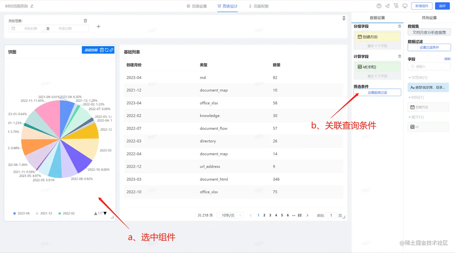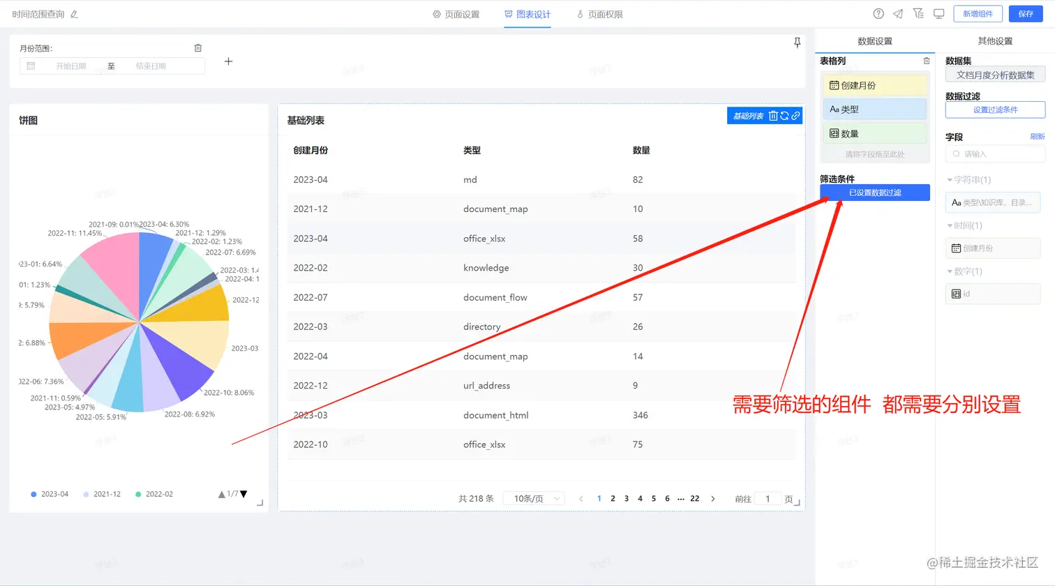 3、关联展示组件与筛选条件