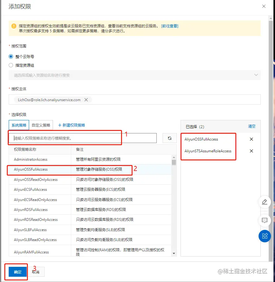 接下来依旧是搜索oss与sts进行添加,只不过这个是为角色添加权限