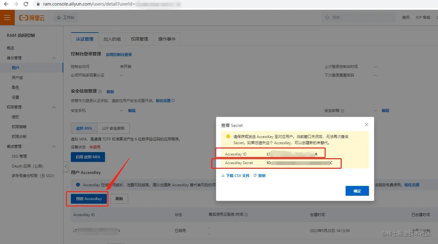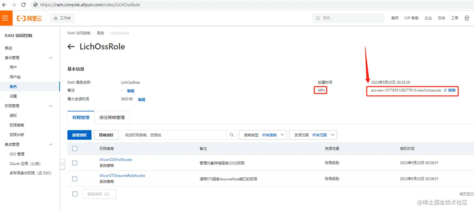 在编码之前要获取access_key_id、access_key_secret、role_arn。