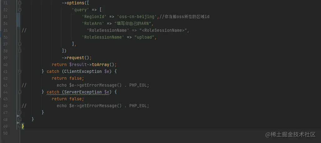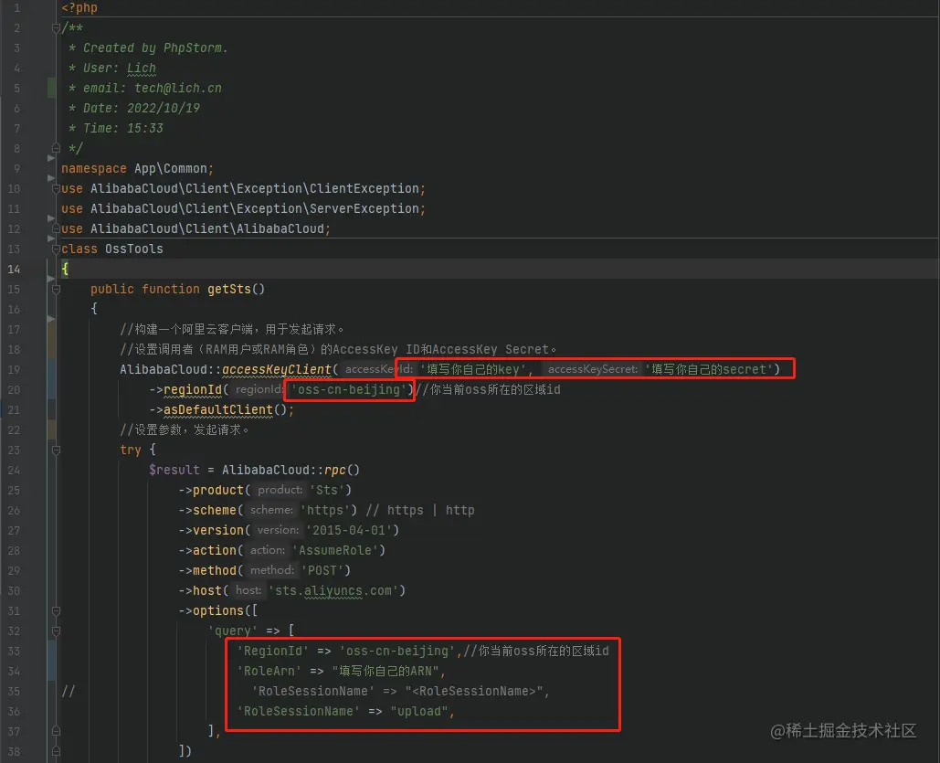 4.php获取阿里云sts临时令牌代码示例,只有红框处需要填写