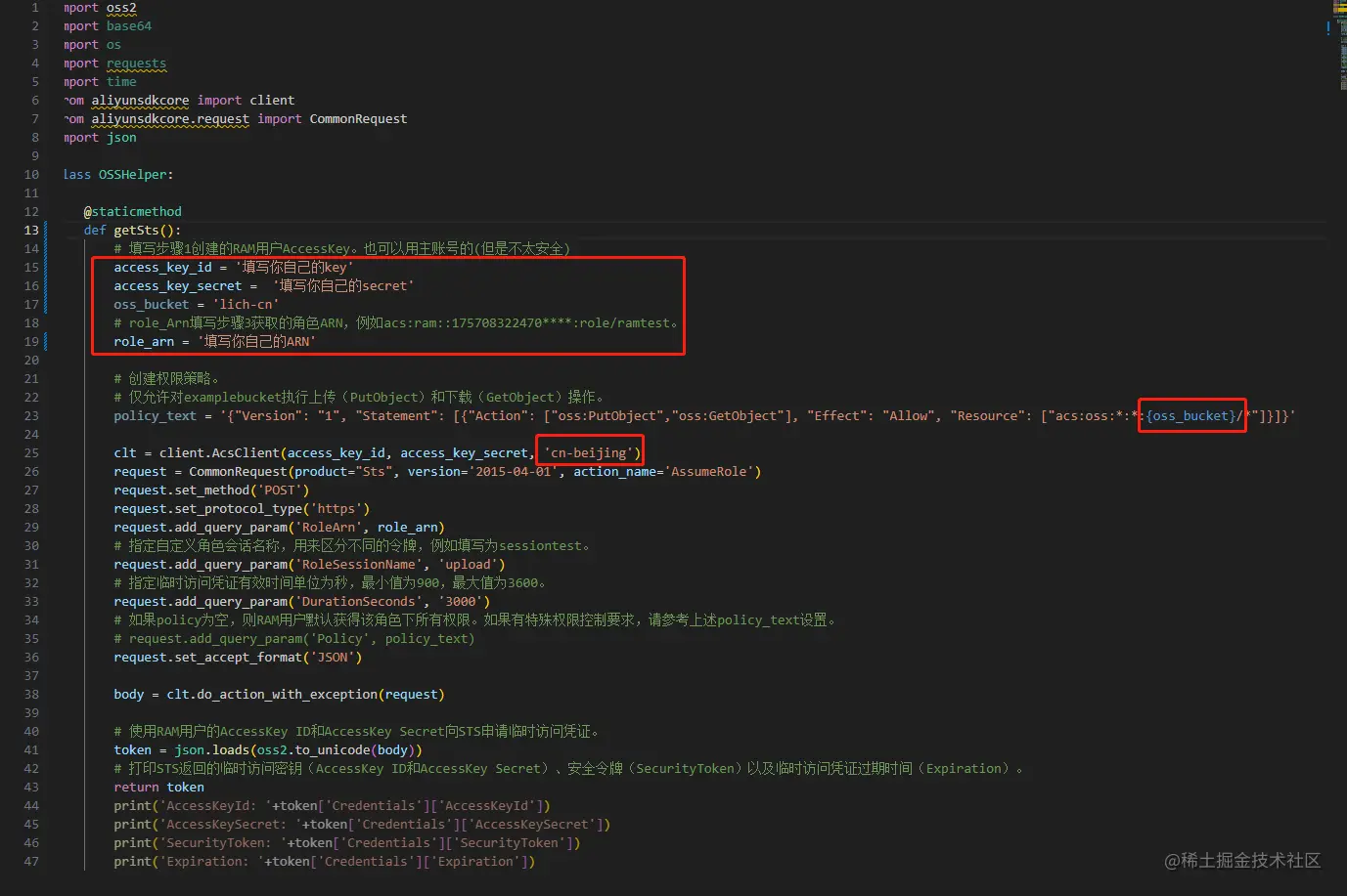 3.python获取阿里云sts临时令牌代码示例,只有红框处需要填写