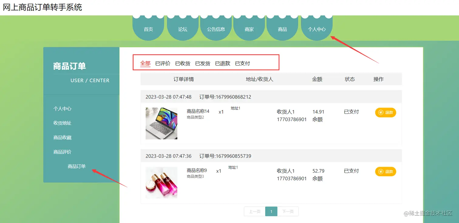 网上商品订单转手系统主要功能设计: