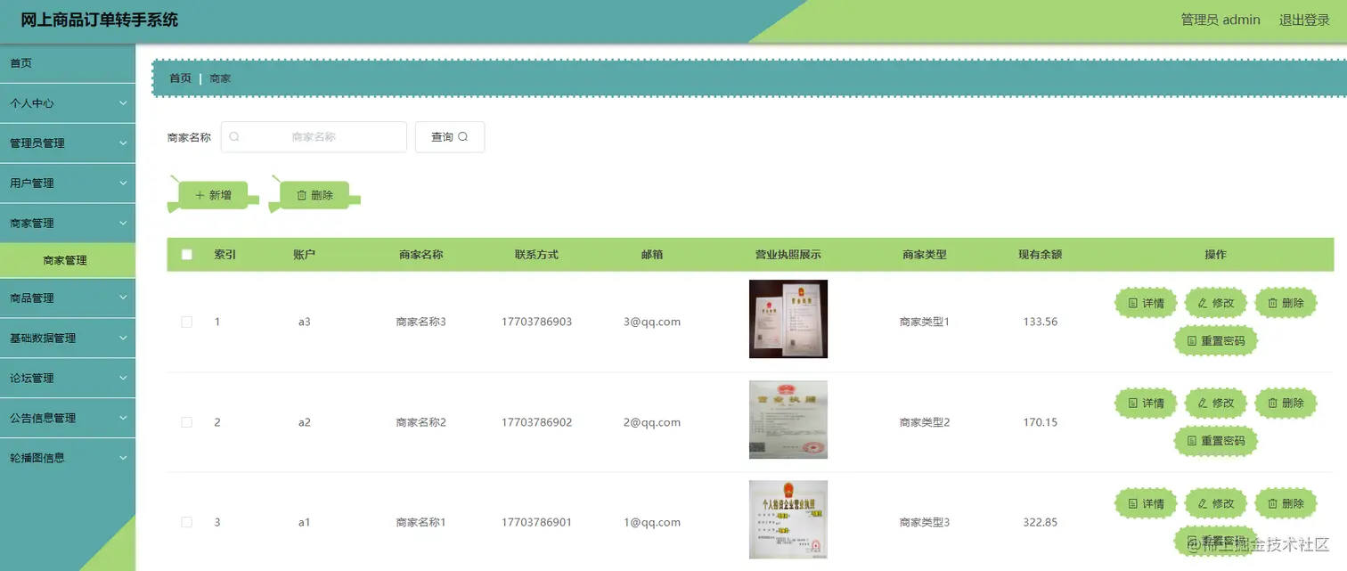 4.3.2 商家管理: