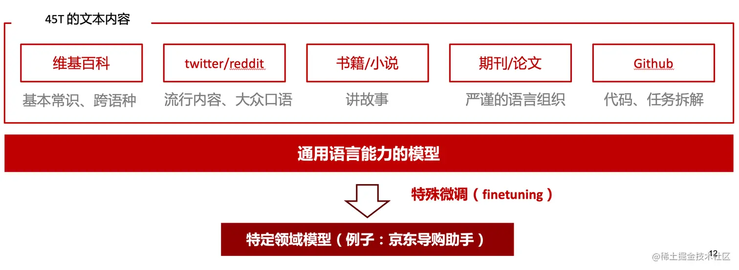 通过前面的文字接龙模式,用大量数据喂出来的预训练模型,使其具备通用的语言能力,这里的预训练有2层含义: