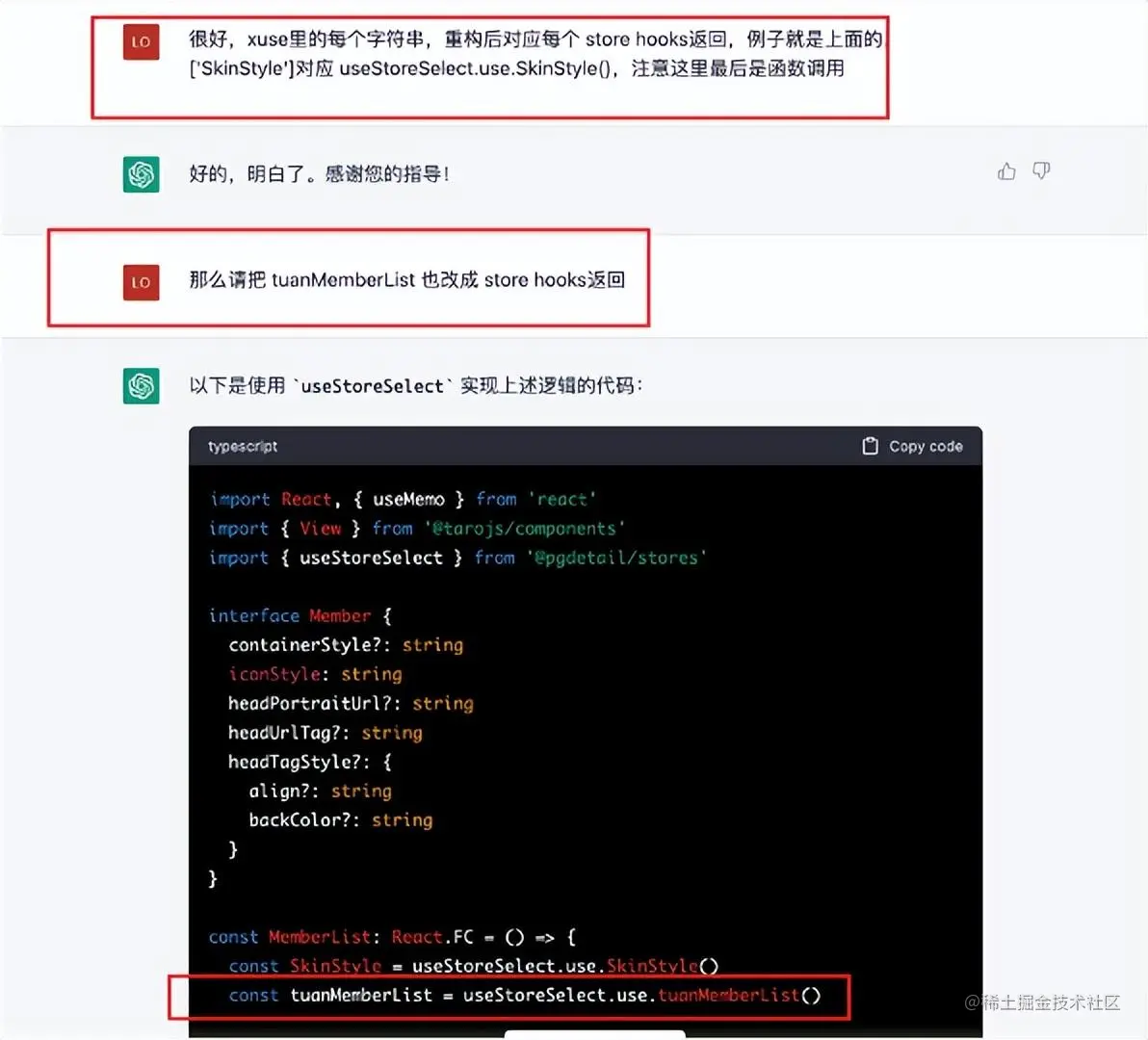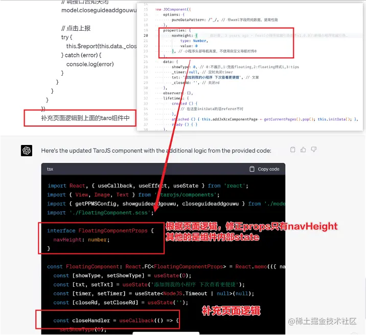 对于前端开发同学来说,最关注它的代码能力。正好在一个小程序转taro重构的项目中体验了ChatGPT的能力:
