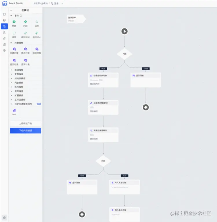 逻辑流串联了应用内的页面模型和数据模型,能够实现应用内的逻辑交互。魔笔的可视化逻辑流搭建,帮助浙江台研发同学高效实现系统页面或组件间的交互功能。