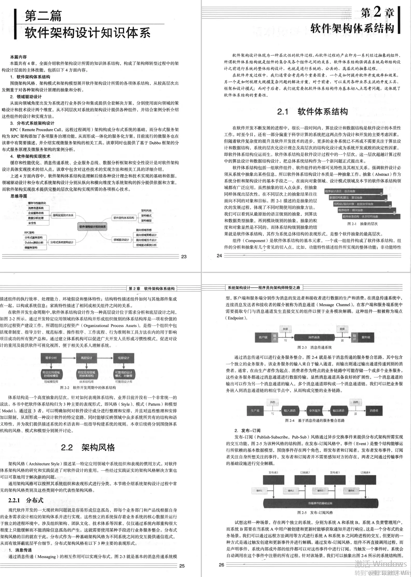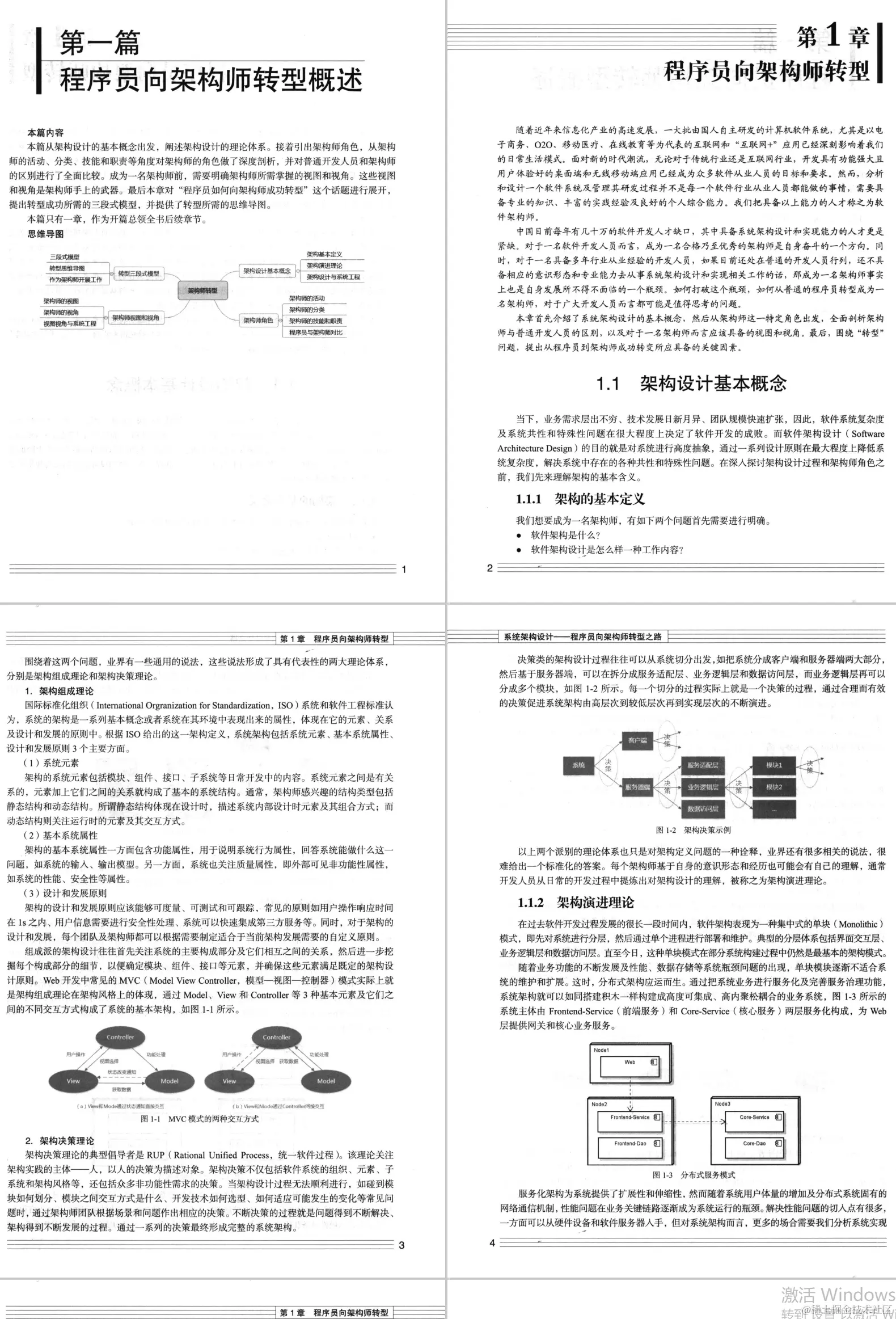 本篇共有4章,全面介绍软件架构设计所需的知识体系结构,构成了架构师转型过程中的架构设计层面的主体技能,包括以下4方面内容。