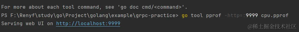也可以执行go run main.go > cpu.pprof命令,将输出定向到文件 cpu.pprof 中