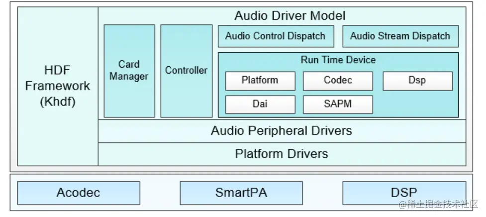 ADM框架是基于HDF系统框架开发,Card Manager是用来管理多个声卡链表,Controller是声卡的控制模块包含了音量、静音、通路选择等控制功能。