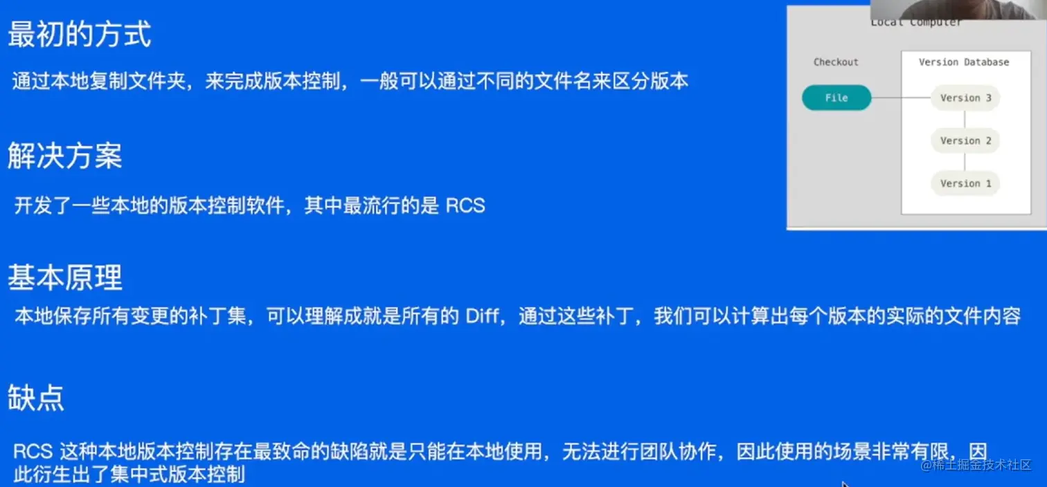 GIT|青训营笔记 wuzhi_ice 2023-05-23 50 阅读1分钟 概述 Git是什么 版本控制 本地版本控制 集中版本控制 分布式版本控制 发展历史 没有最好,只有适合. Git的基本使用 Git基本命令 目录介绍 Git Config 常见Git配置 Git Remote HTTP Remote SSH Remote Git Add Objects Refs Annotation Tag 追溯历史版本