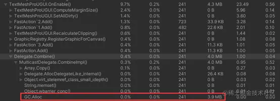 Q:只有一个界面对一个TMP的OnPreRenderText进行了一次+=的操作,为什么在其他界面也发现有Delegate.Combine()的GC,且每次大小不同?