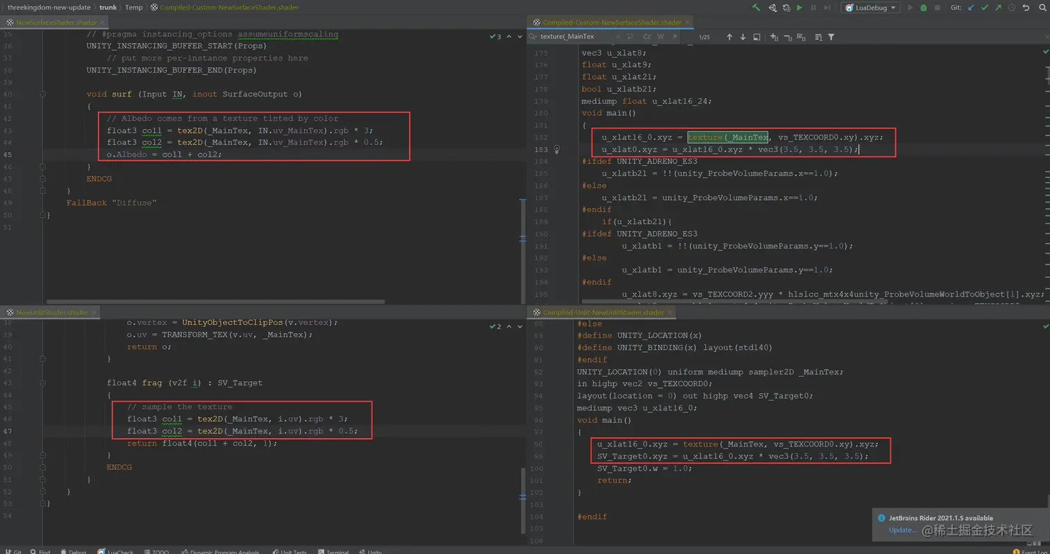 如上代码,有资料简单提了一句说Shader代码编译的时候会自动优化到一次采样里面去,不过并没提是SurfaceShader才有的编译优化还是所有的Shader的编译优化都会这样?