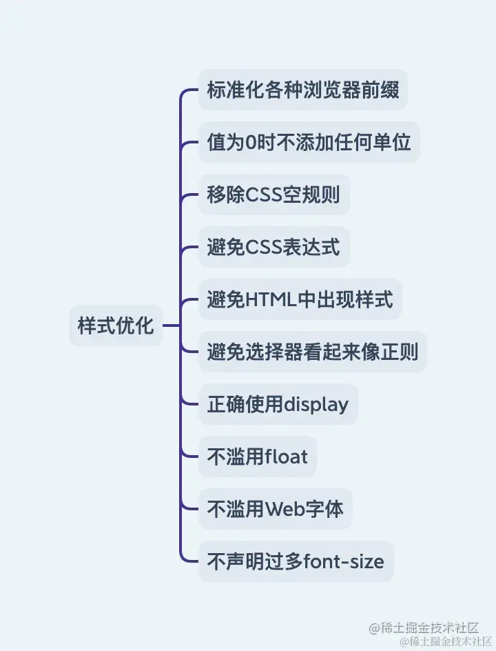 - 使用CSS图标,背景图片压缩,使用雪碧图,减少HTTP请求数等。