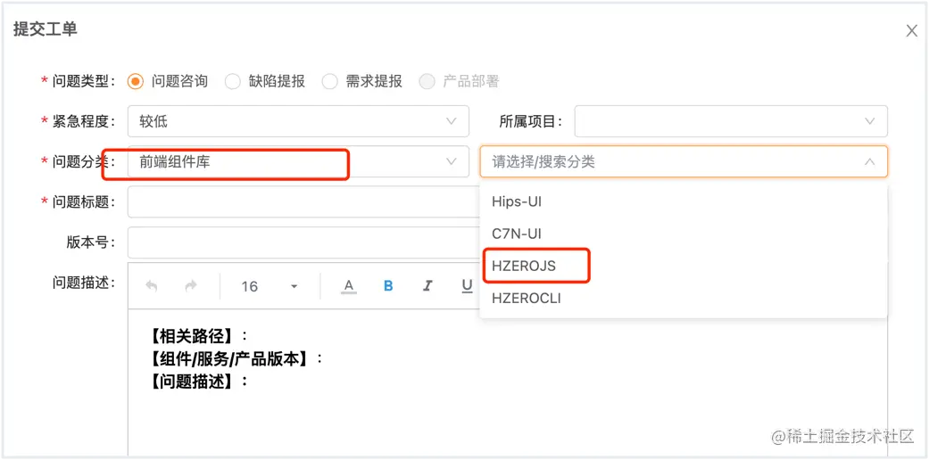 选择【前端组件库 -> HZEROJS】分类提反馈联系我们!