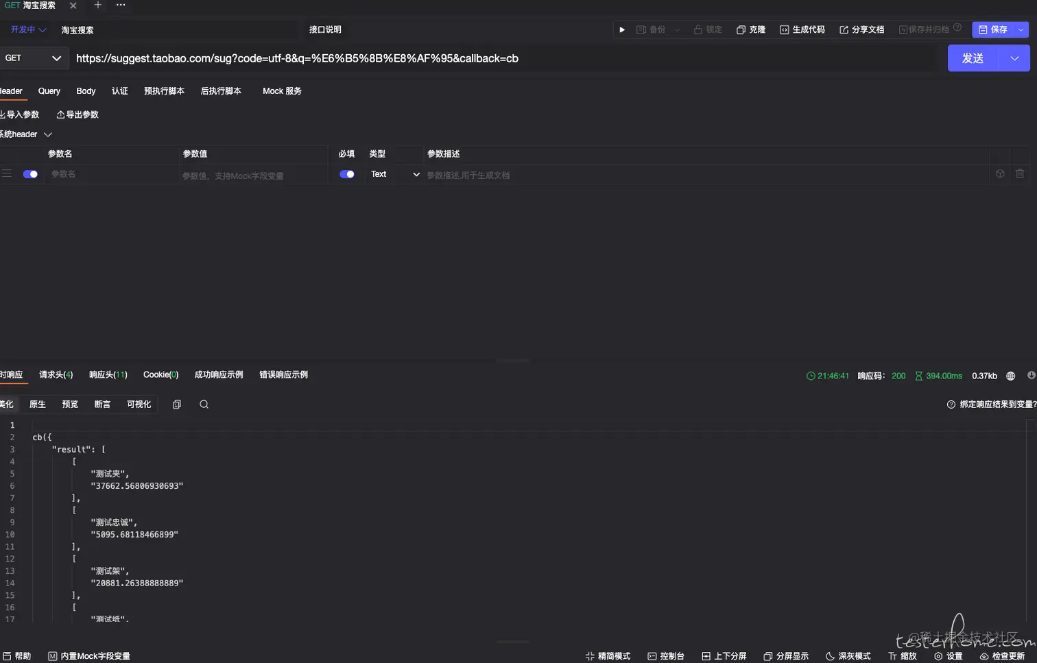 这里使用 get 请求接口做演示: suggest.taobao.com/sug?code=ut…