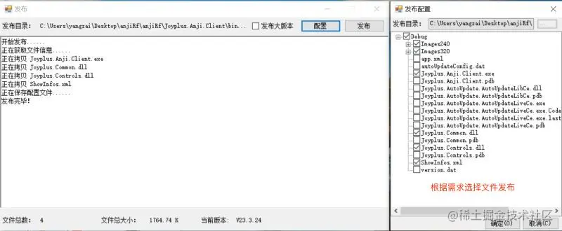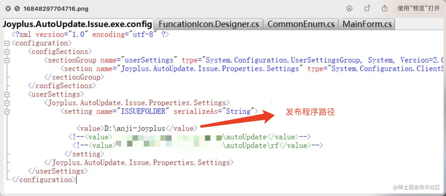 发布成功后可在 Issue/bin/Debug/xxx.config 文件查看发布程序路径