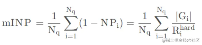 - mAP 与 mINP:AP 的计算和目标检测 AP 计算类似,即求不同 Recall 对应Precision 的平均值,mAP 为 AP 的平均值;mINP(mean Inverse Negative Penalty)计算公式如下: