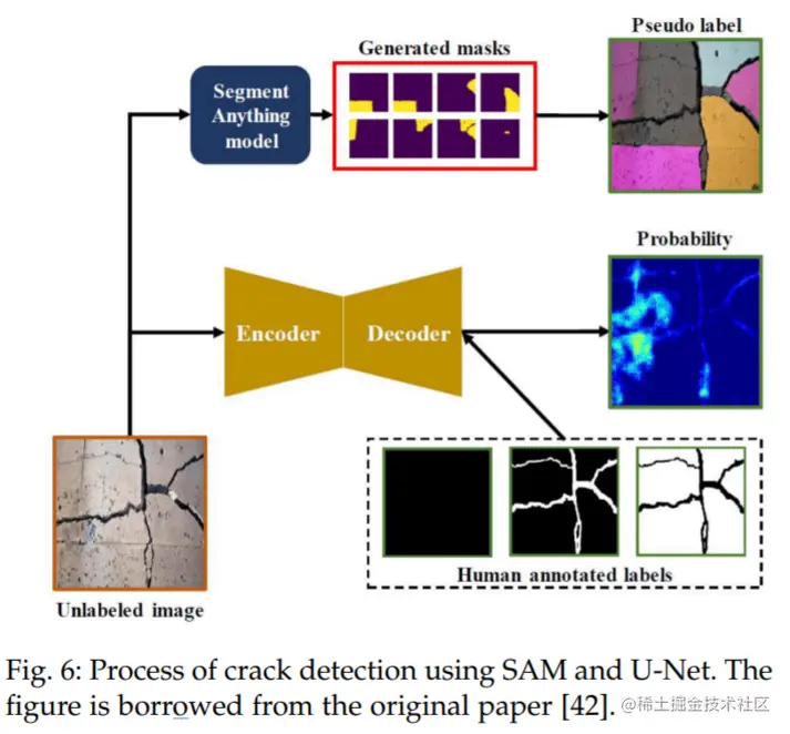 使用 SAM 和 U-Net 进行裂纹检测的过程。图摘自原论文 [42]。