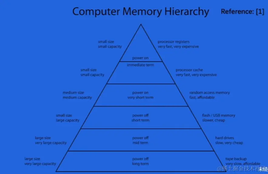 - 从上到下,存取速度由快到慢,成本由高到低