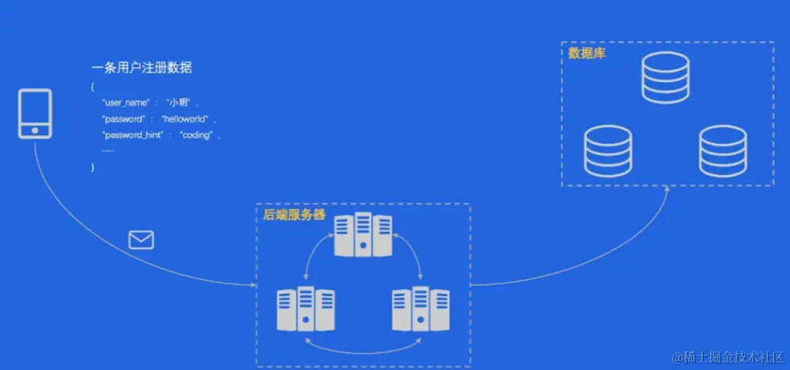 - 大体上的流动分为 前端-->后端服务器-->数据库