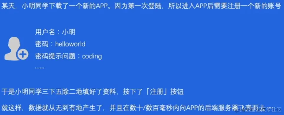 案例:当小明从app输入数据点击登录的时候,数据就产生了,并发送到后端服务器。