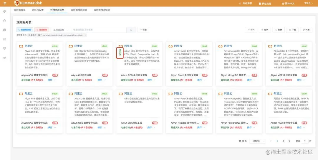 新增阿里云、华为云类型内置检测规则组和规则,通过检测获取资源合规结果。(X-PACK)
