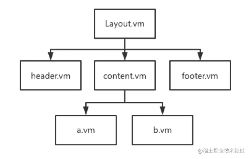 Velocity单文件组件的组织方式参照了这个层级结构,使用一个文件名以.vm后缀结尾的文件,描述了一个Velocity组件,由于缺乏工程化的能力,区别点在于:(1)为了兼容低版本浏览器,需要使用script标签来承载模板;不考虑浏览器兼容性的情况下,也可以直接使用template标签。(2)需要手动调用Vue.component执行组件的注册。