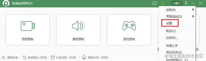 步骤2: 打开软件,点击主界面【三】进入软件【设置】页面,可以查看预设的录屏快捷键。