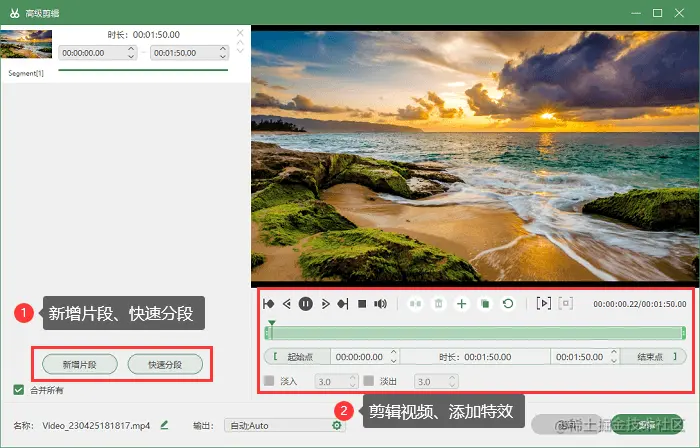 步骤4: 录制完成后,想要对视频进行剪辑可以进入【高级剪辑】页面,剪辑之后点击【完成】按钮,可以继续对视频进行压缩、格式转换等后期处理。