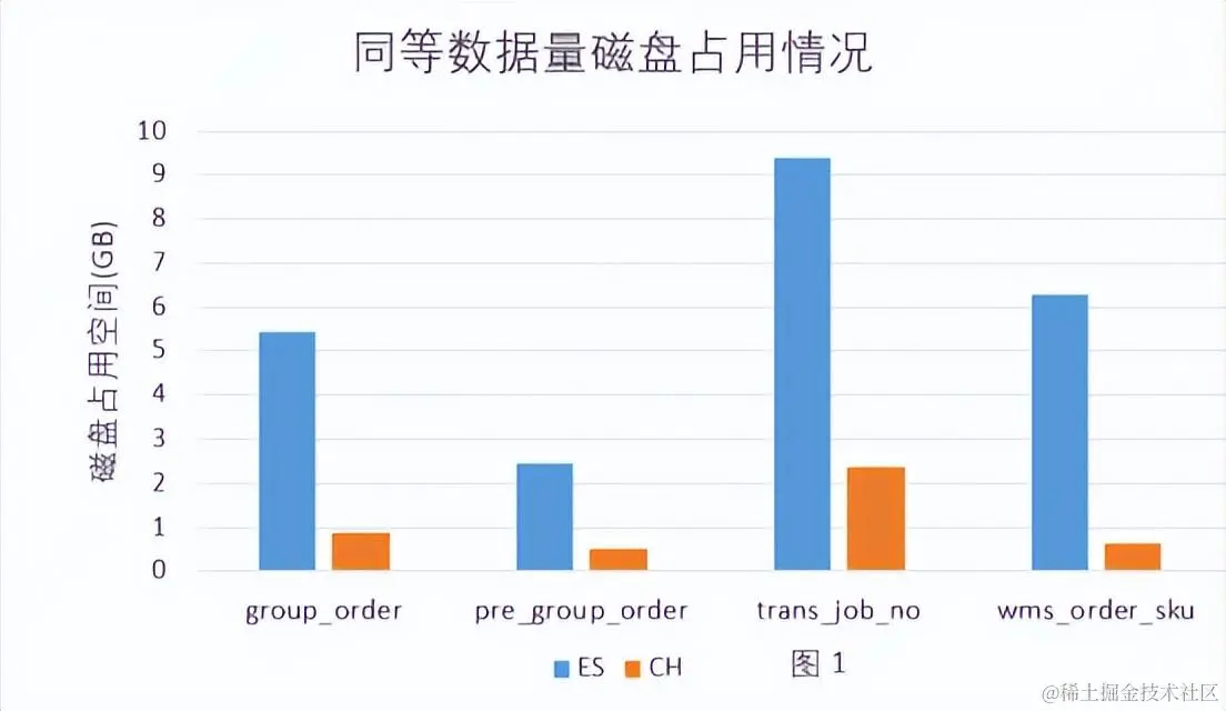 - Clickhouse的数据压缩比要高于Elasticsearch,相同业务数据占用的磁盘空间ES占用磁盘空间是Clickhouse的3-10倍,平均在6倍。 见图1