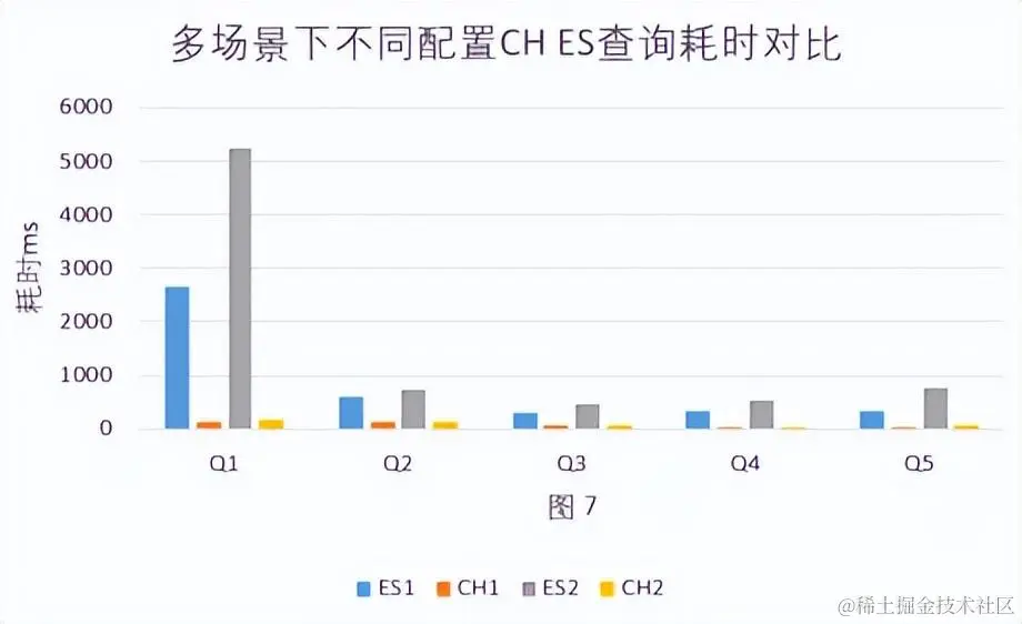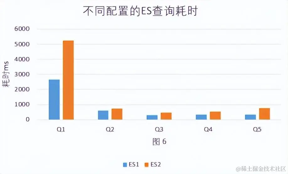 - Elasticsearch在集群配置差一倍的情况下查询性能受影响较大,ES2(46C 320GB)比ES1(78C 576GB)平均慢40%。见图 6