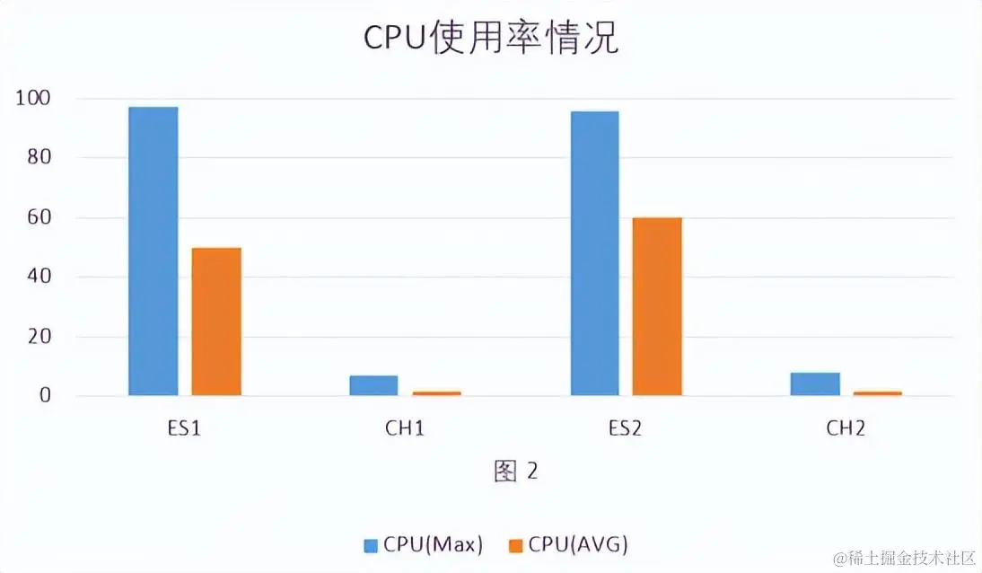 - 占用CPU情况:Elasticsearch CPU一直占用很高,Clickhouse占用很少CPU。见 图2