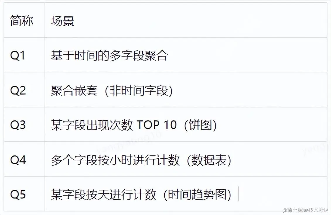 以下场景是我们数据报表以及数据分析中出现的高频场景,所以基于此进行查询性能测试