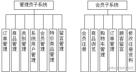 分为管理员和会员两个大模块: