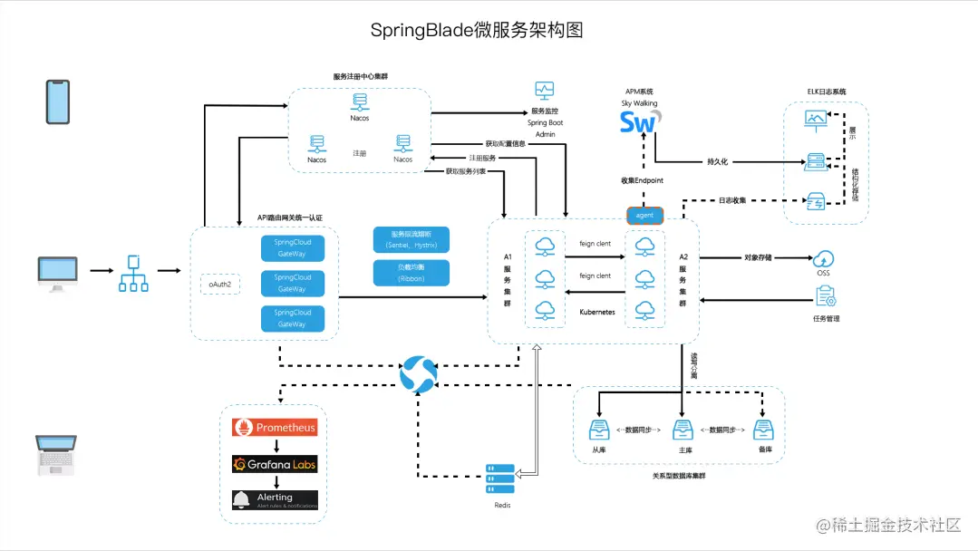 SpringBlade 采用前后端分离的模式,前端基于 React、Ant Design、Vue、Element-UI。后端采用 Spring Cloud 全家桶,注册中心、配置中心选型 Nacos,简封装了多租户底层,用更少的代码换来拓展性更强的 SaaS 多租户系统。
