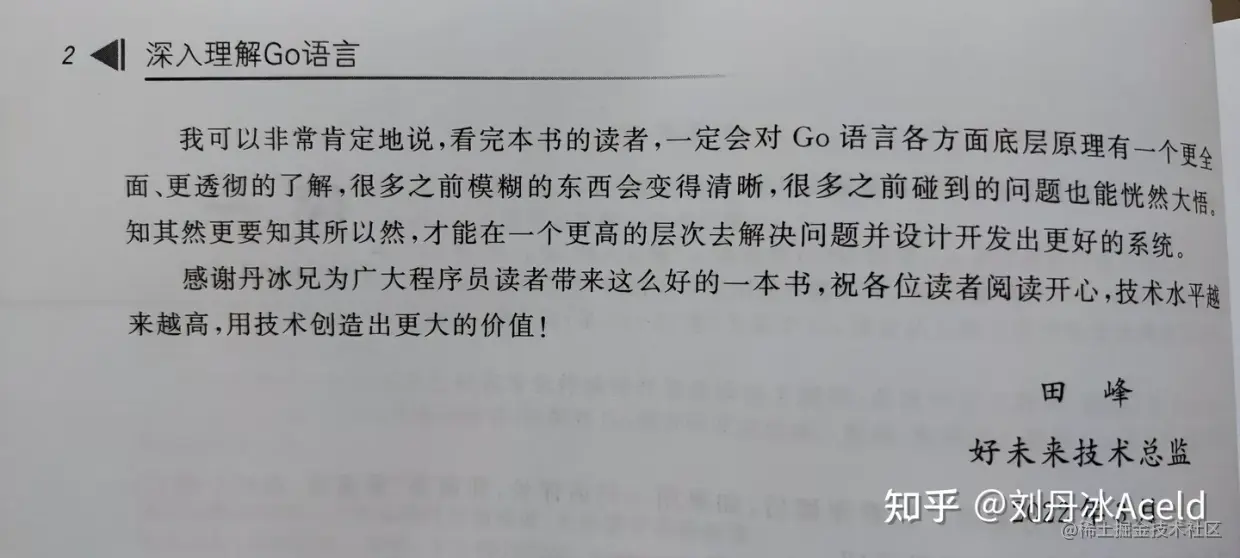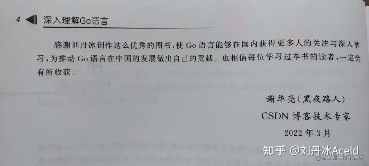 2022年3月底,邀请到好未来技术研发总监田峰和知名CSDN博客专家谢华亮(Black)帮忙给本书作序,在此感谢二位老师为《深入理解Go语言》作序。