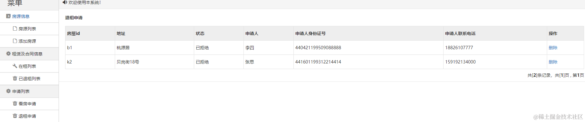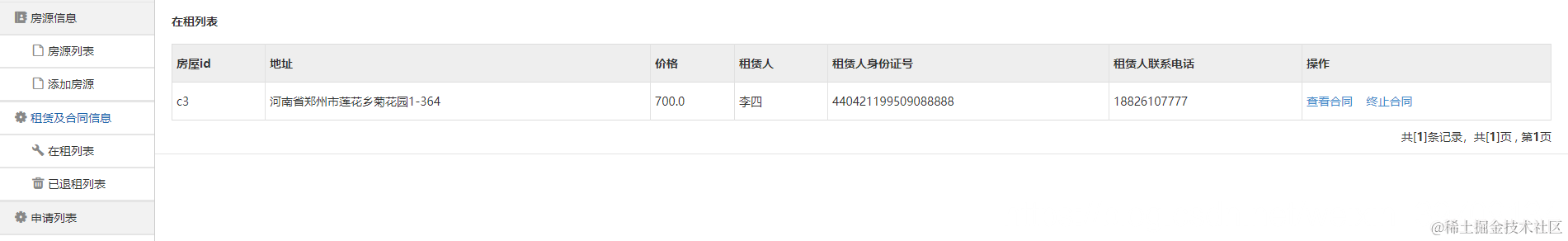 3.租赁合同管理以及在租房源和已退租房源信息管理